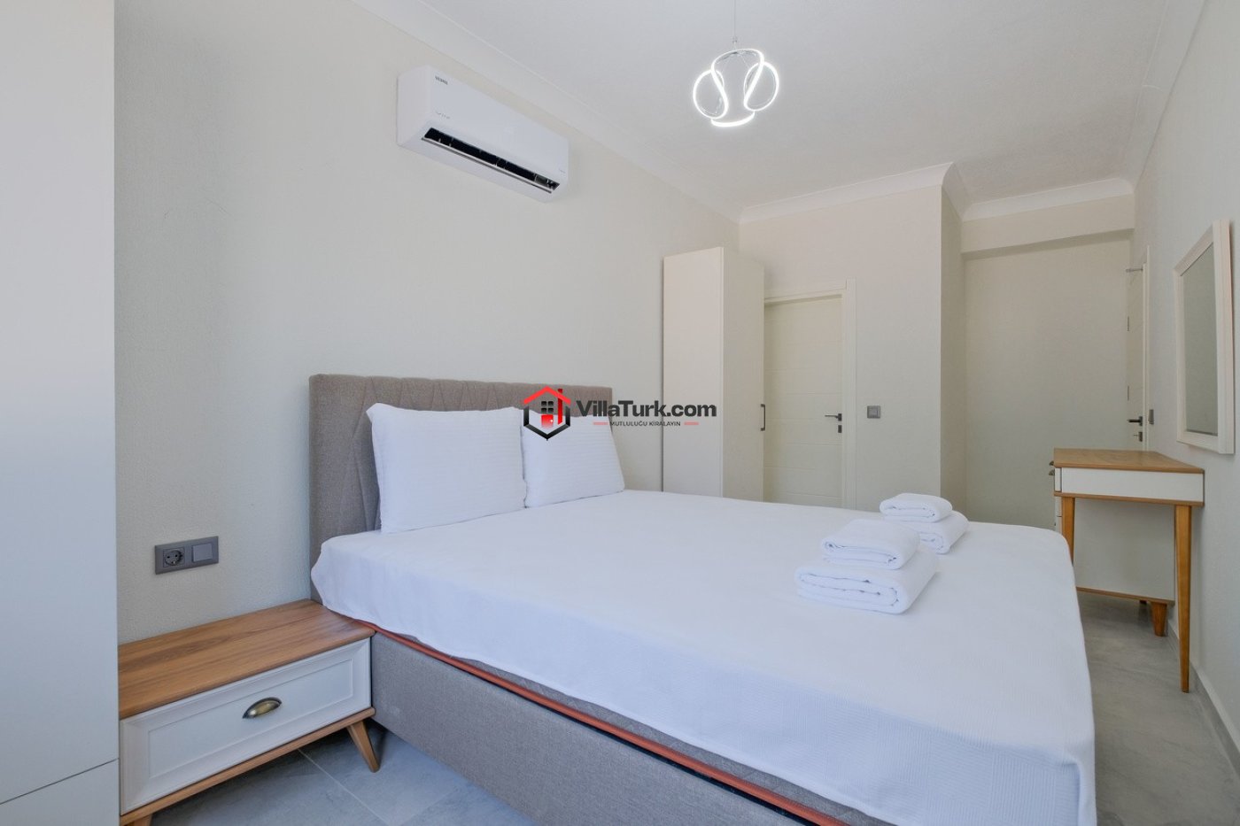 Villanın iç mekanı, her misafirin kendi özel alanına sahip olabileceği şekilde tasarlandı. Her detayı özenle düşünülmüş 3 yatak odasının yerleşimi şu şekildedir: