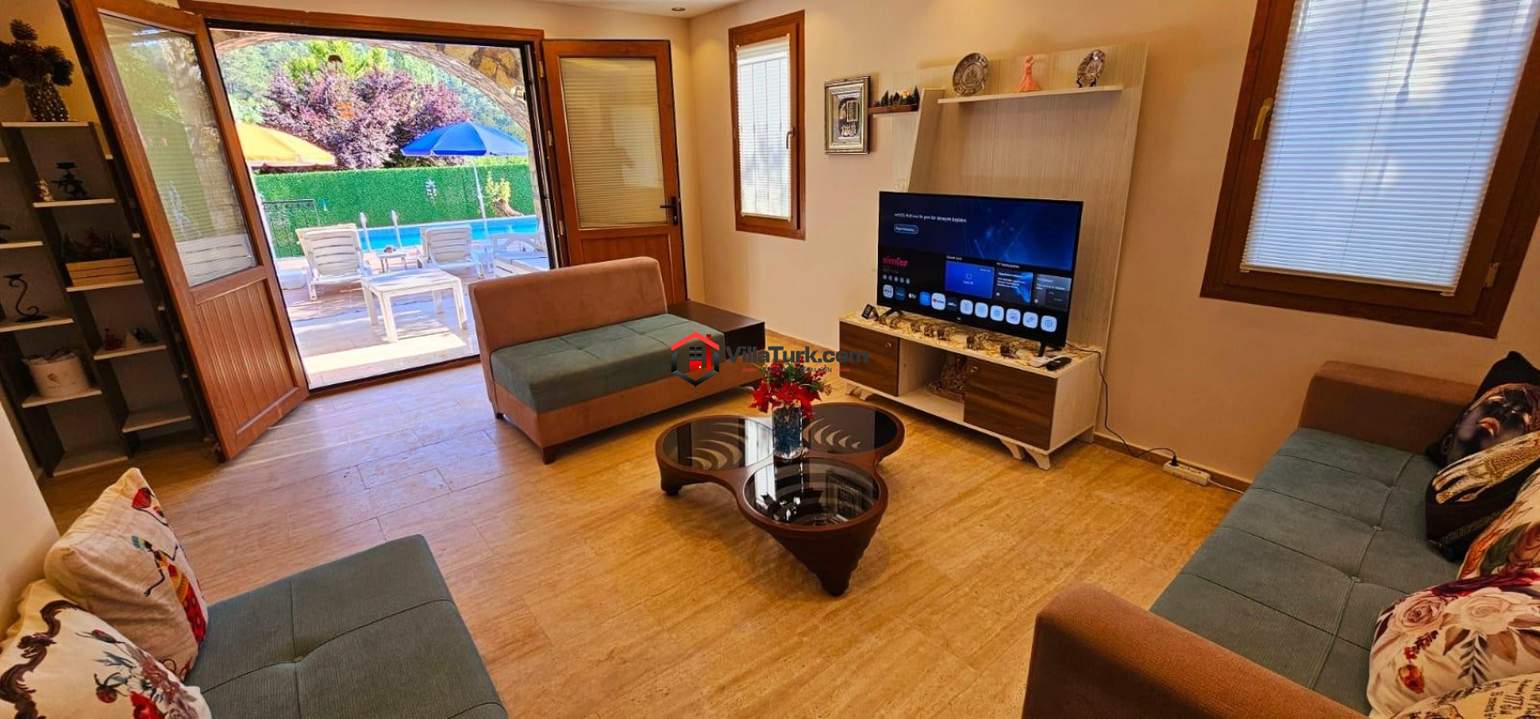 Korunaklı havuzlu, doğa manzaralı ve çekirdek aileye uygun kiralık villa