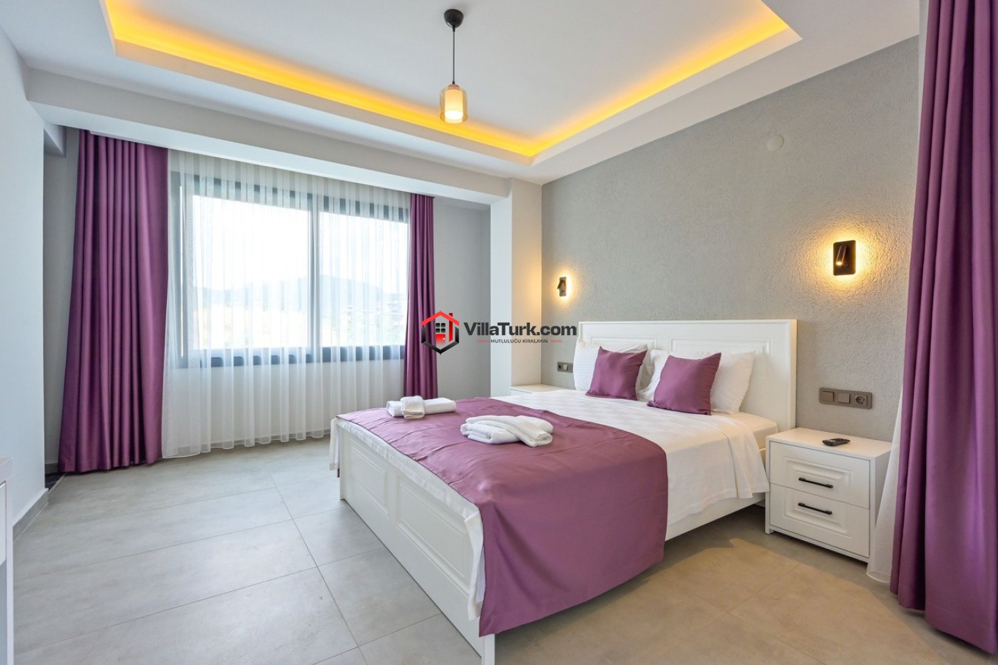 3. Yatak Odası: Çift kişilik yatak, ebeveyn banyosu, TV, klima
