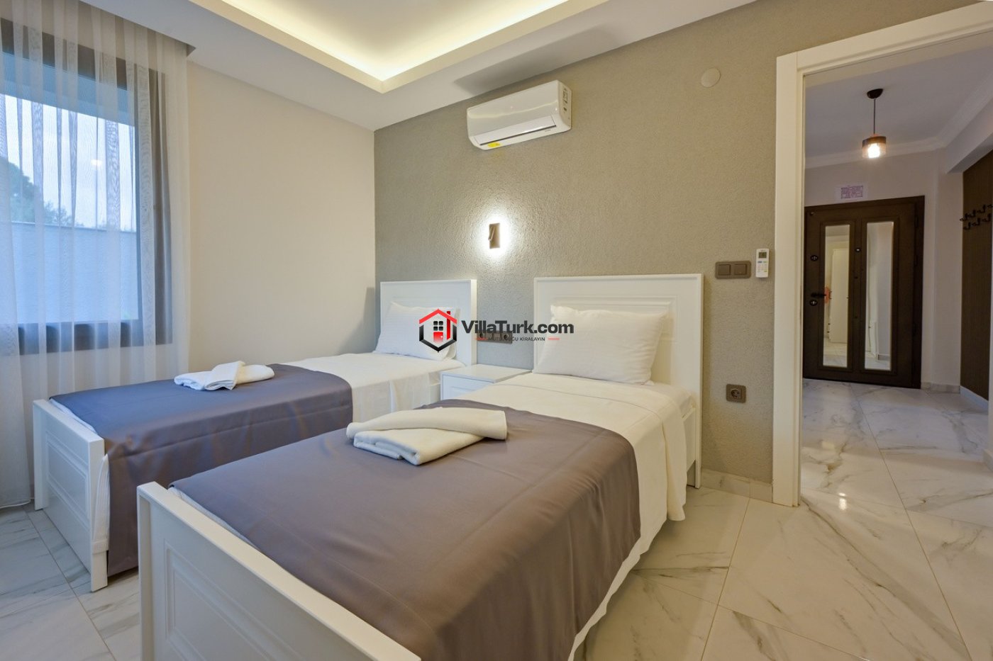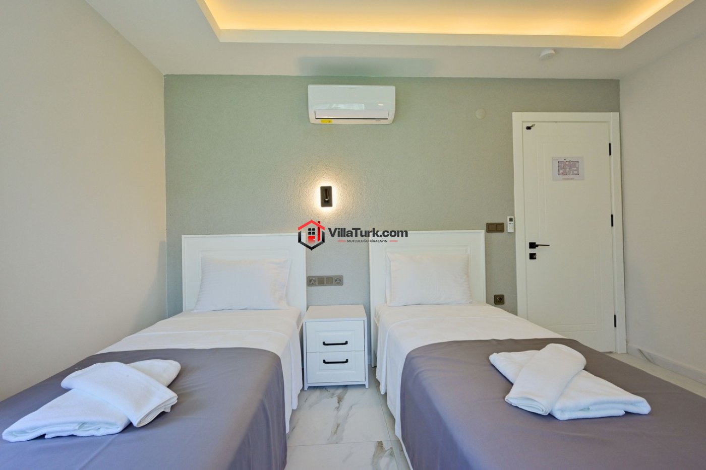 2. Yatak Odası: İki tek kişilik yatak, ebeveyn banyosu, TV, klima