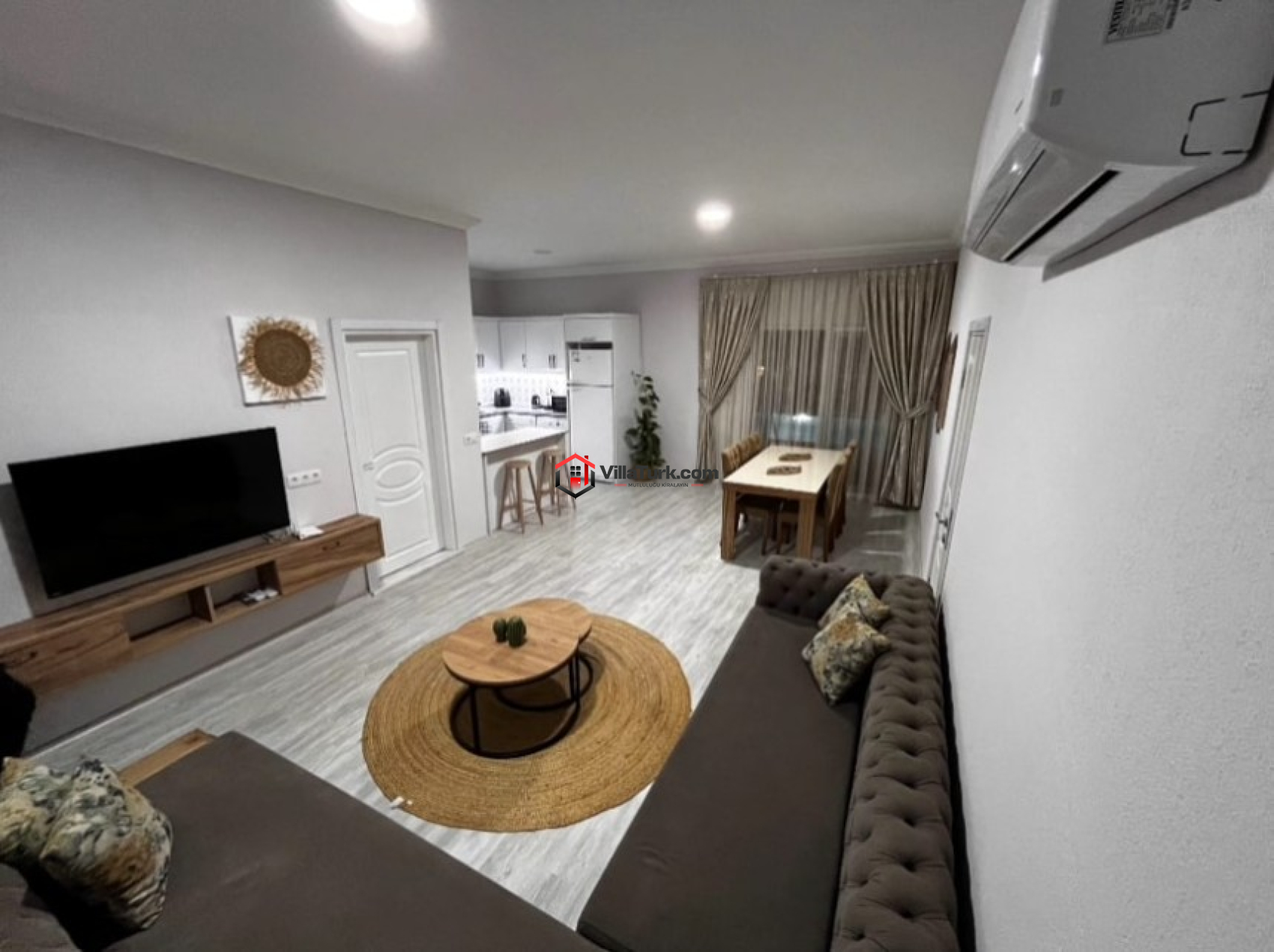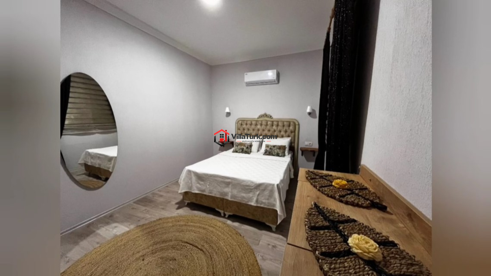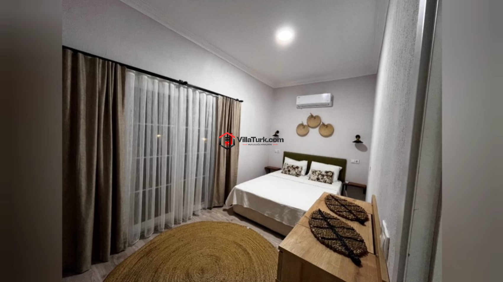3 yatak odalı bu geniş villada, toplamda 6 kişiye kadar konaklama imkânı sağlanmaktadır. Her odada klima ve konforlu yataklar mevcut olup, ebeveyn banyosu ile özel alanınızı daha da rahatlatabilirsiniz. Birinci yatak odasında çift kişilik yatak, klima ve ebeveyn banyosu yer alırken, ikinci odada da çift kişilik yatak ve klima bulunuyor. Üçüncü odada ise iki tek kişilik yatak ve klima, gruplar ya da çocuklu aileler için mükemmel bir seçenek sunuyor. Geniş açık mutfak-salon alanı ise TV, klima ve WC-Duş gibi olanaklarla donatılmıştır. Her bir detay, rahat bir tatil geçirmeniz için tasarlanmıştır.