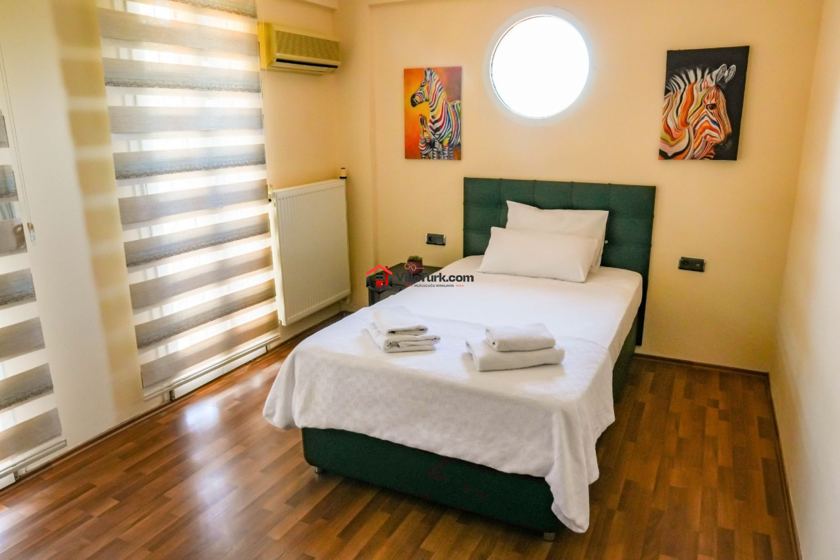 3. Yatak Odası: Çift kişilik yatak, ortak banyo/WC, klima