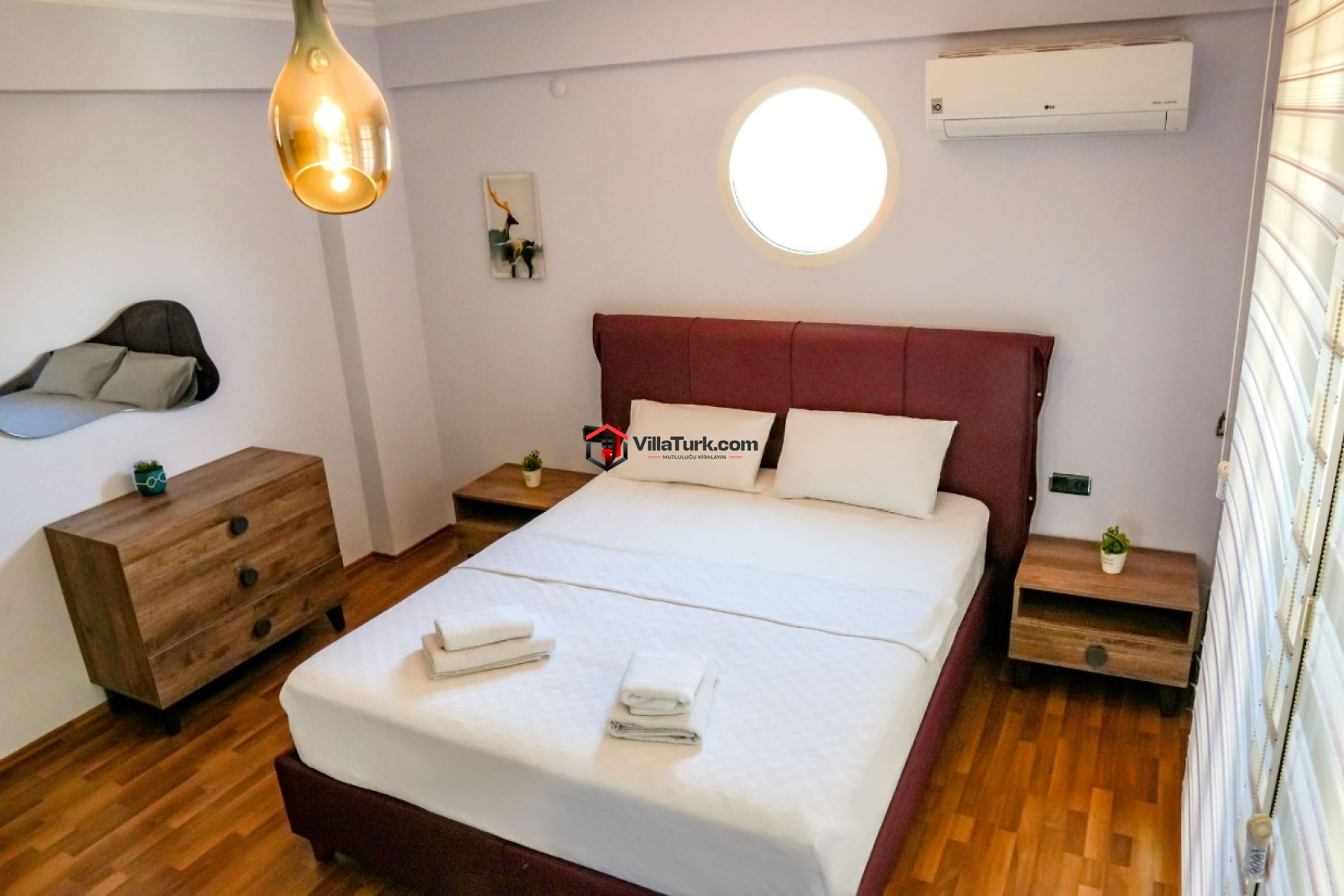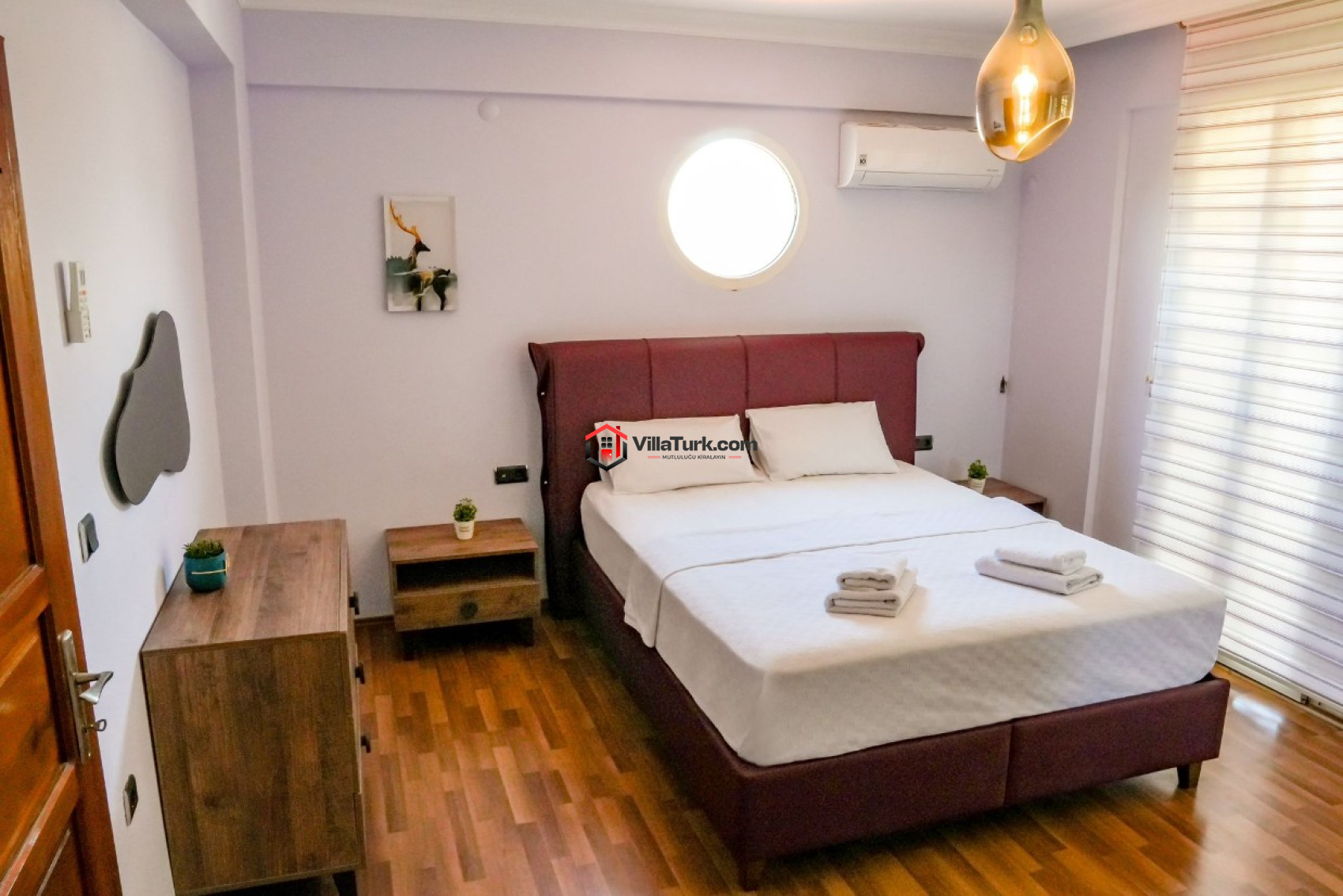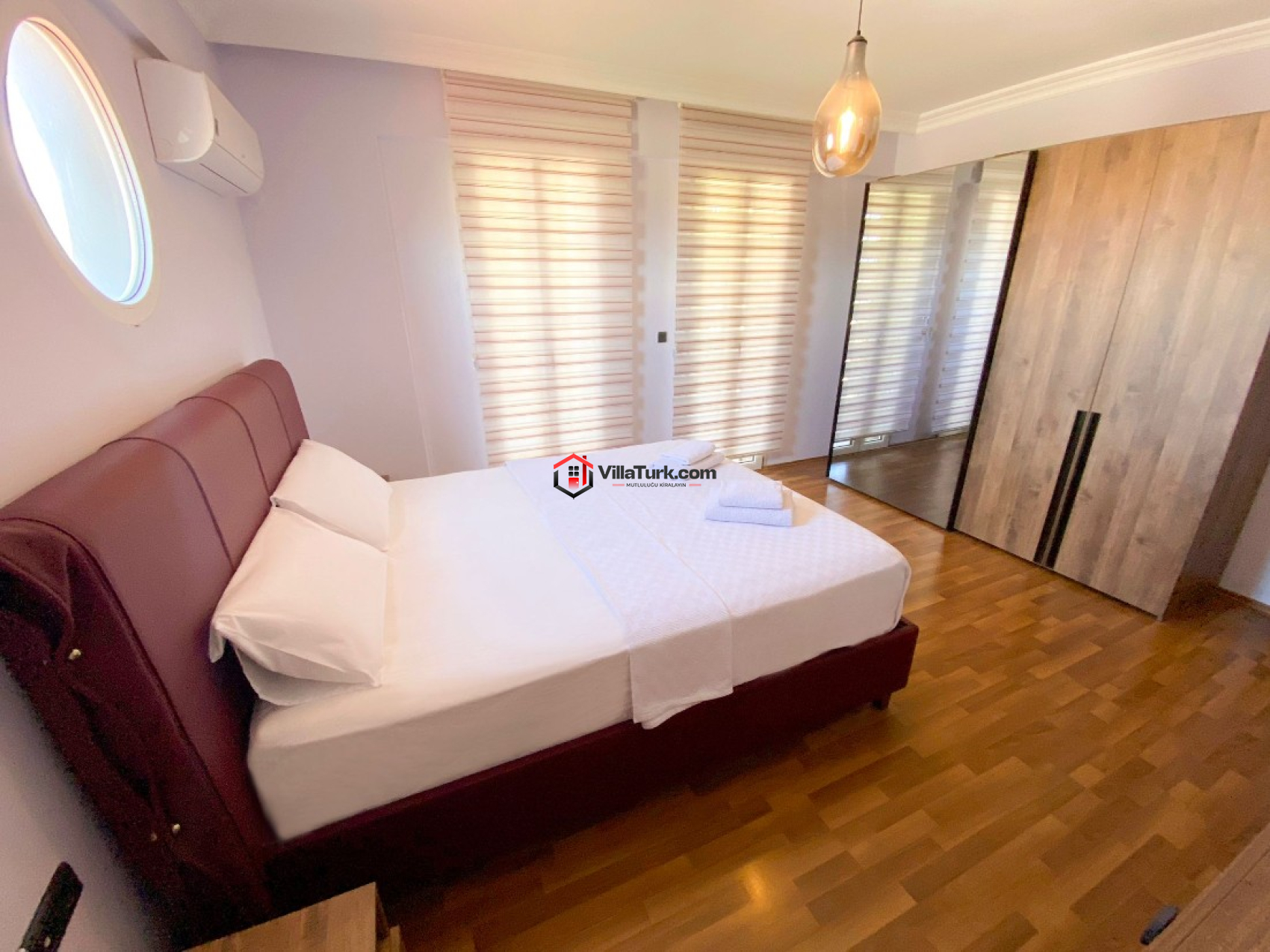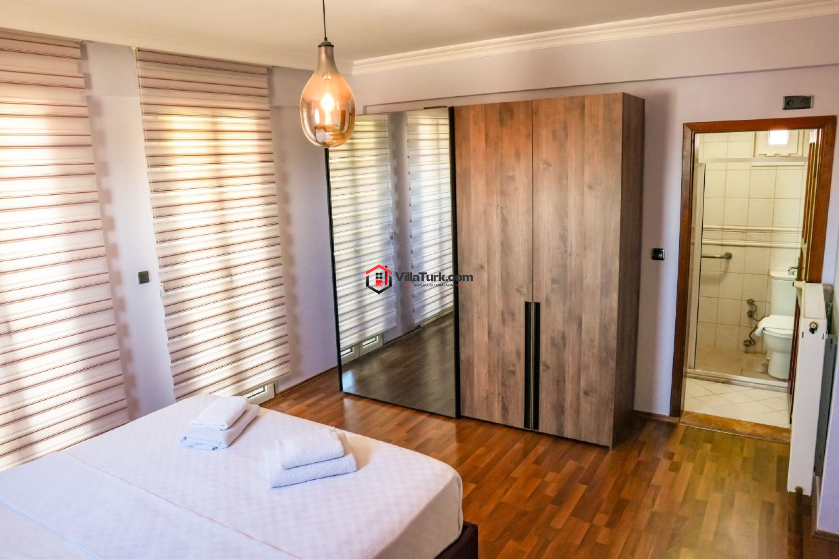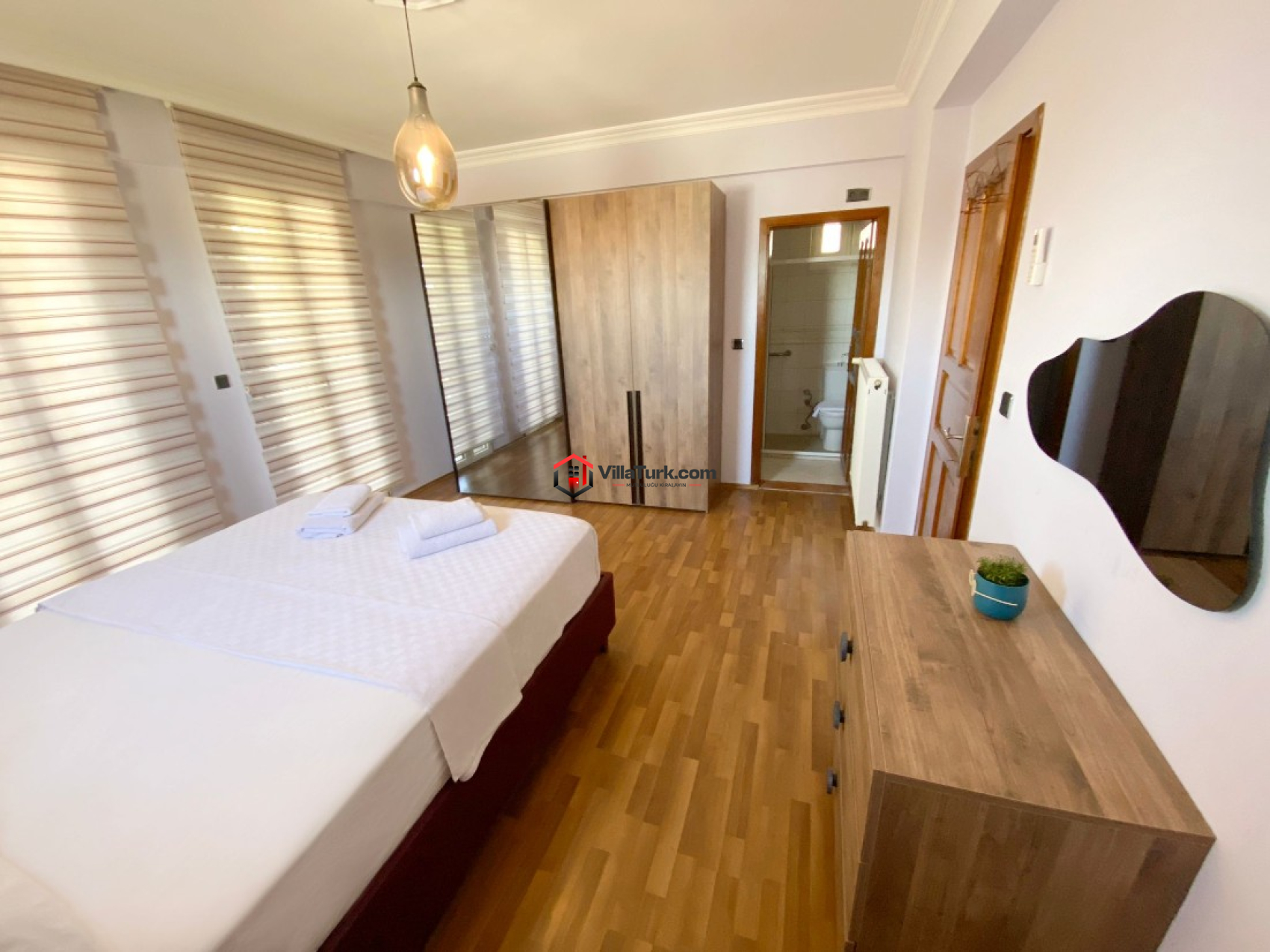 1. Yatak Odası: Çift kişilik yatak, ebeveyn banyosu/WC, klima ve gardırop