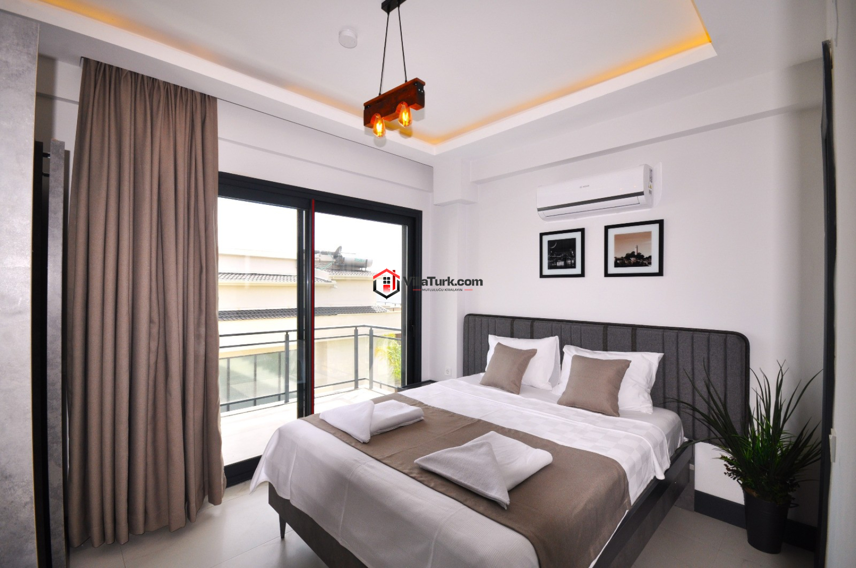 Detayları: Çift kişilik yatak, Elbise dolabı, Komodin, Klima, Giyinme odası, Deniz manzaralı Balkon bulunmaktadır.