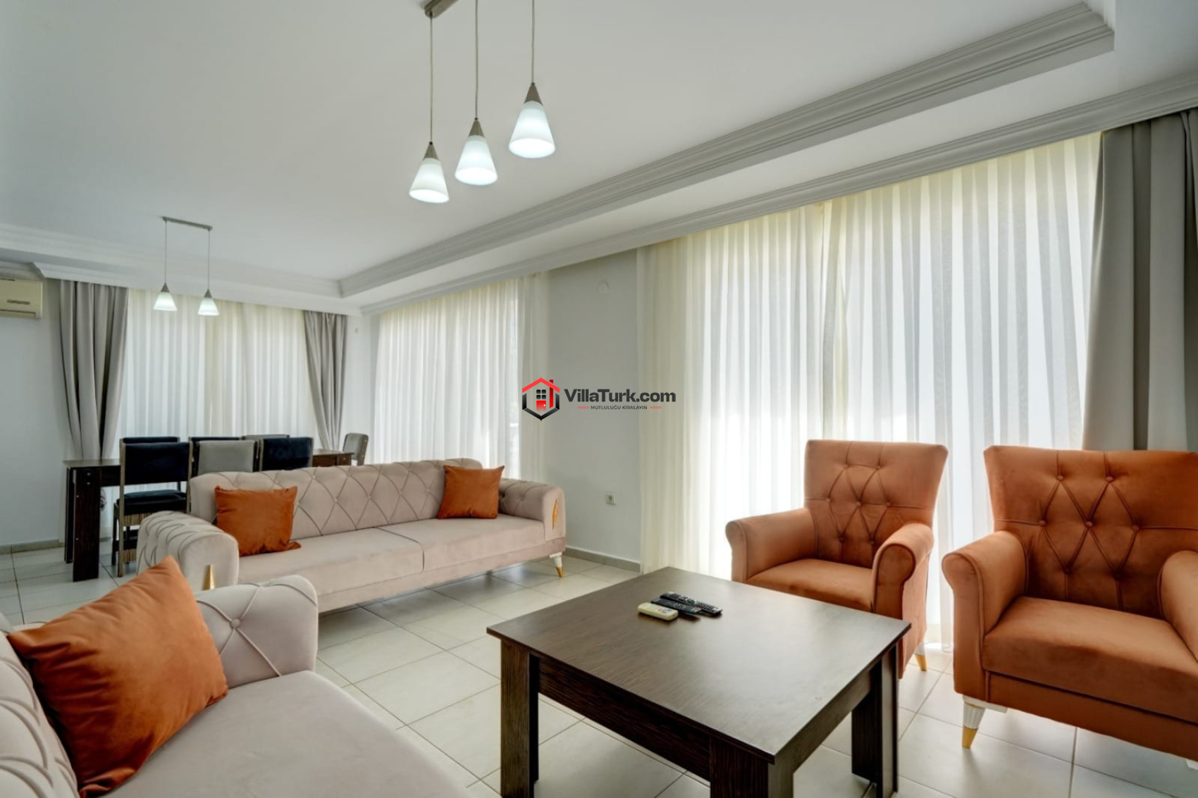 Tam donanımlı Amerikan mutfak, tatil boyunca dilediğiniz yemeği hazırlamanıza olanak tanırken; oturma odasında konforlu koltuk takımı, klima ve uydu TV ile keyifli anlar geçirebilirsiniz. Geniş yemek masası ve misafir tuvaleti gibi detaylar da ev konforunu yaşatıyor.
