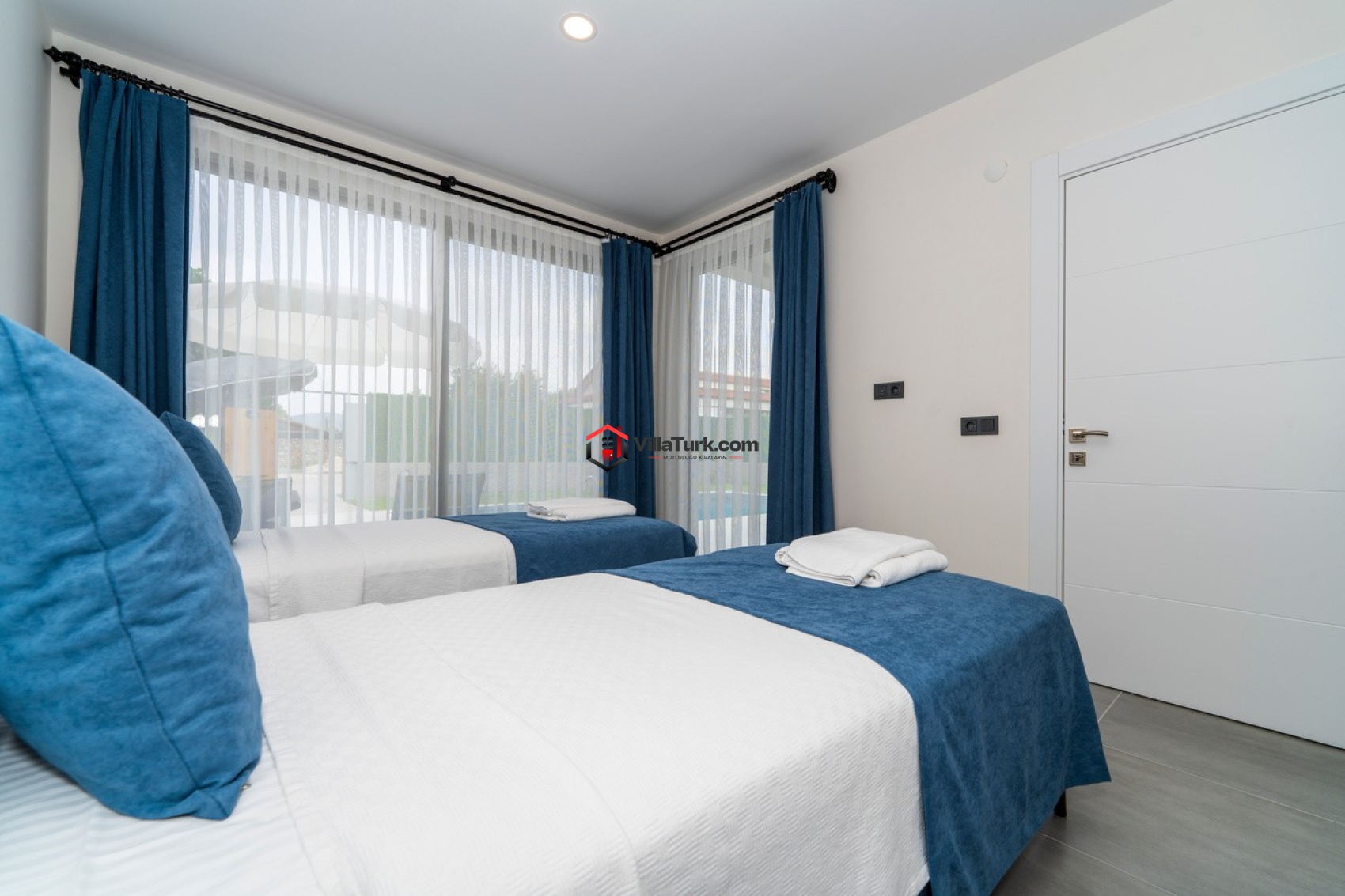 2. Yatak Odası: İki tek kişilik yatak, elbise dolabı, klima, komodin ve banyo/WC ile ferah bir tasarım.