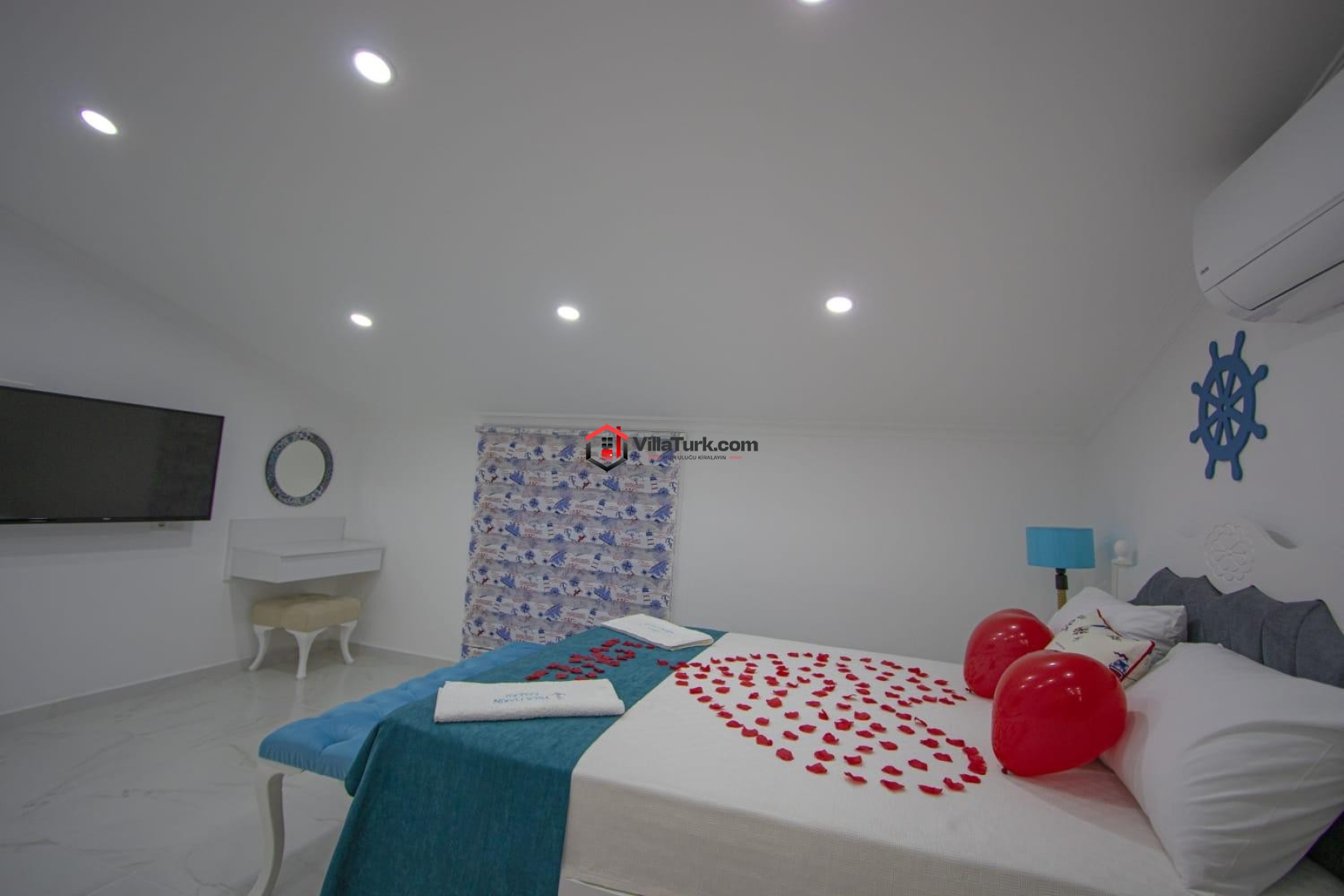 Villa Marin, alışılmışın dışında bir tatil deneyimi yaşamak isteyenler için modern mimarisi ve çocuk dostu konsepti ile ön plana çıkmaktadır. 8 misafir kapasiteli villamız 4 yatak odası ve 4 ebeveyn banyosundan oluşmaktadır. 1 yatak odasında jakuzi bulunan villamızın özellikle çocuklu ailelerimiz için diğer yatak odasında ise küçük misafirlerimiz için oyun alanı bulunmaktadır. Dünyaca ünlü kaputaş plajına sadece 4 km mesafede olan Villa Marin, Kalkan merkeze ise sadece 1,5 Km mesafededir.