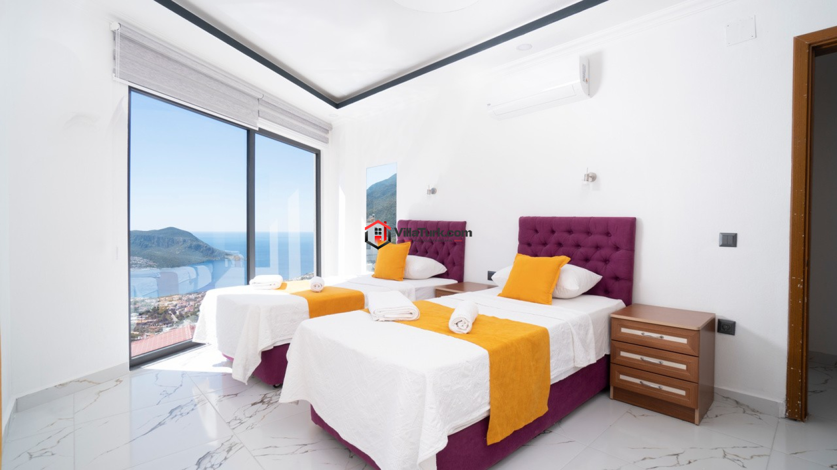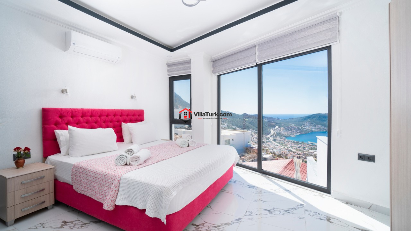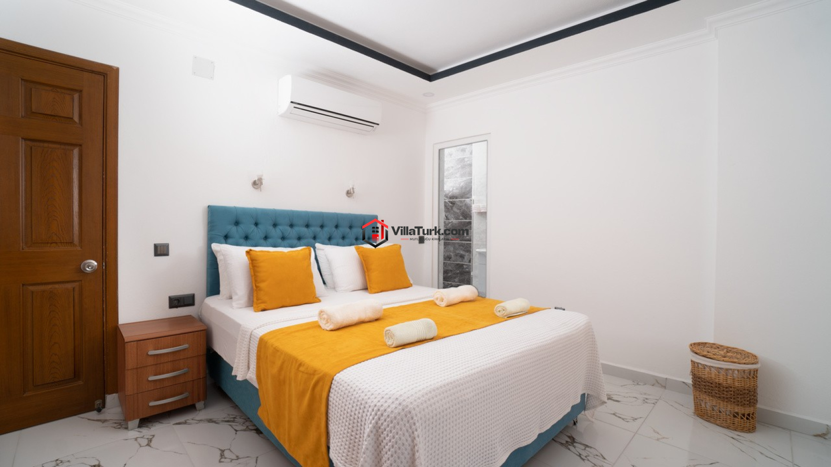 2 adet çift kişilik yatak odası: Klima, gardırop, komodin, makyaj masası, ebeveyn banyosu.