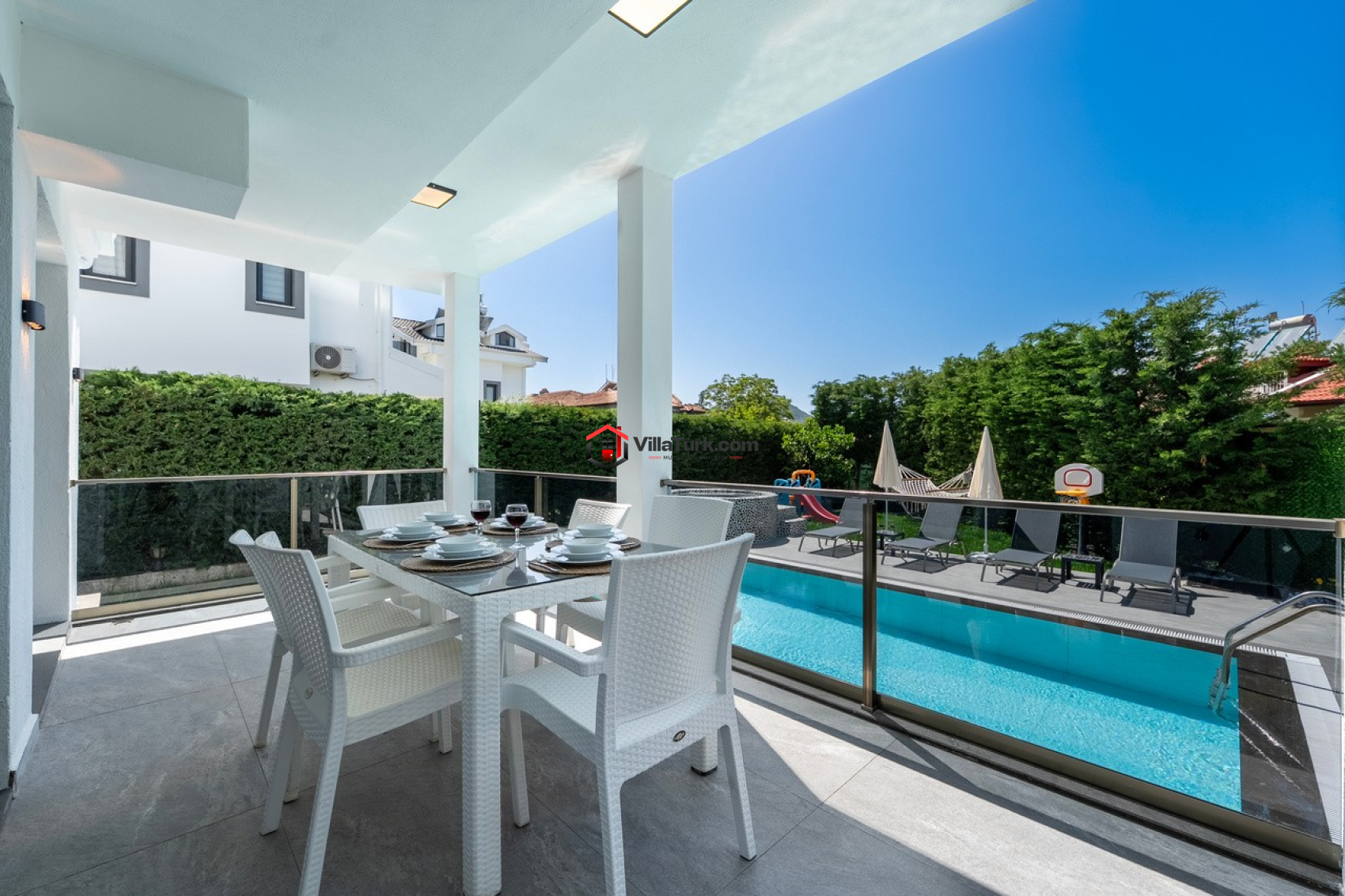 Villa Kuyucak Fethiye ve Ölüdeiz arasında bulunana Hisarönü mevkiinde bulunmaktadır. Hisarönü, Fethiye gece hayatının kalbi konumundadır aynı zamanda Dünyaca ünlü olan Ölüdeniz plajına araçla 5 dakika mesafededir. Tatiliniz boyunca denize ve hareketli bir yaşama yakın olmak istiyorsanız Hisarönü mevkii ve Villa Kuyucak tam size göre. 8 kişi kapasiteli olan villamız geniş ve çoklu aileler için oldukça ideal ve ekonomiktir. 4 yatak odası, 4 banyo, 1 salon ve açık mutfak, 3 balkon, müstakil yüzme havuzu, geniş bahçe düzeni Villa Kuyucak'ın başlıca özellikleridir.